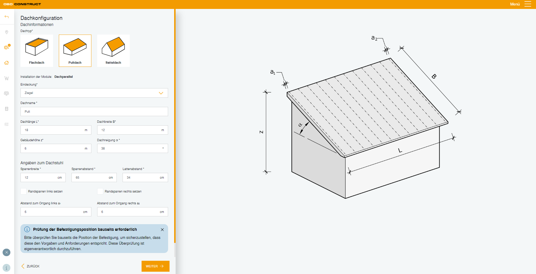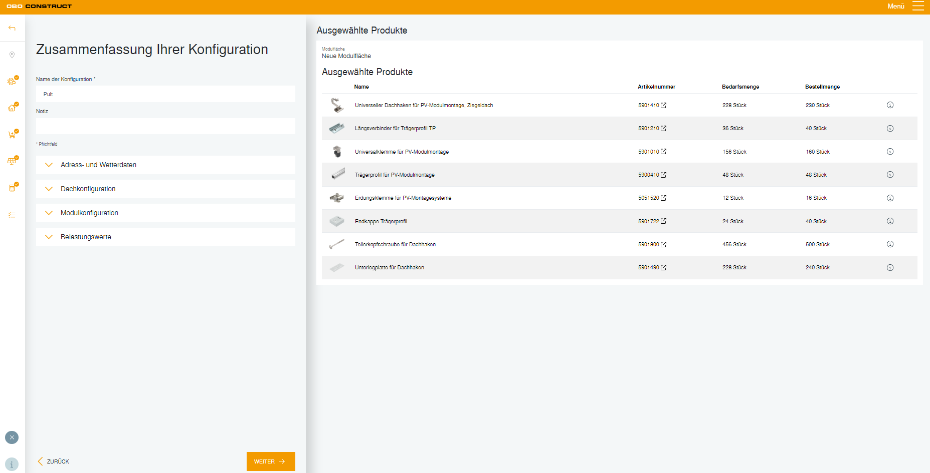 Objavte budúcnosť projektovania fotovoltikyS OBO Construct nástrojom pre riešenie Magic PV je plánovanie fotovoltických montážnych systémov jednoduchšie než kedykoľvek predtým. Nástroj na plánovanie ponúka logicky štruktúrované rozhranie a umožňuje rýchlu, efektívnu prípravu projektu. Krok za krokom sa tak dopracujete k optimálnemu OBO PV montážnemu systému – prispôsobenému vašim špecifickým požiadavkám a potrebám.