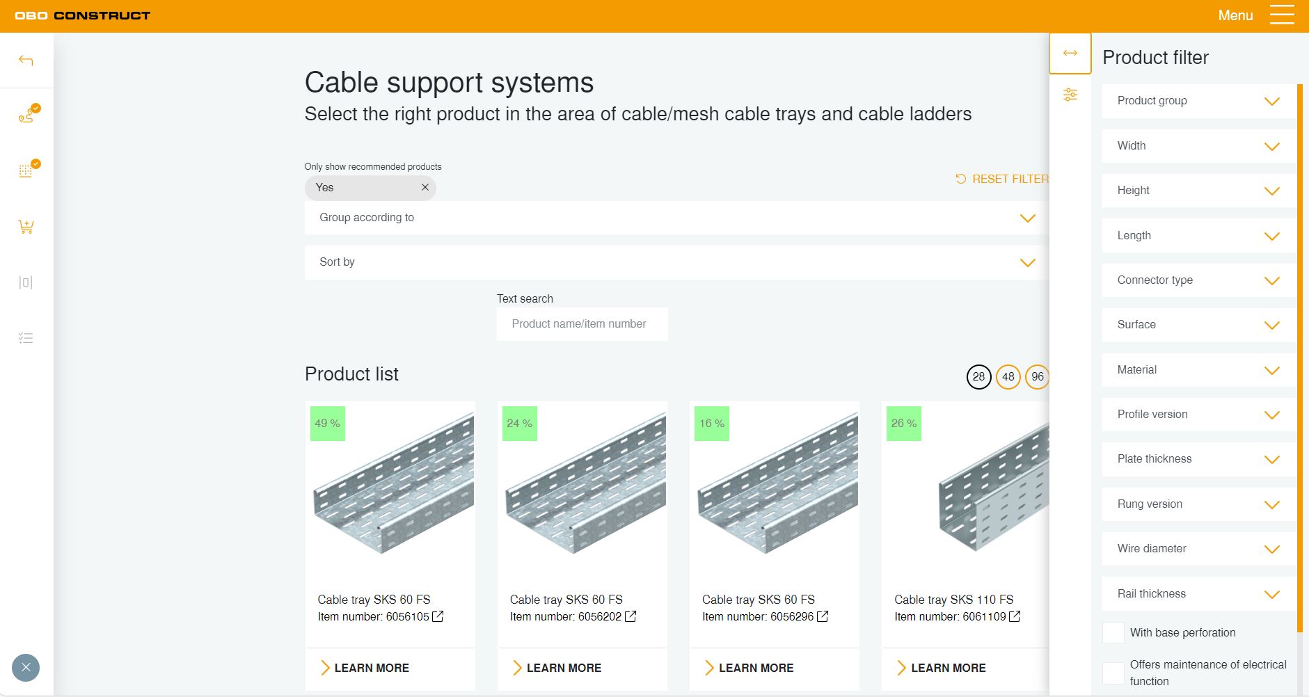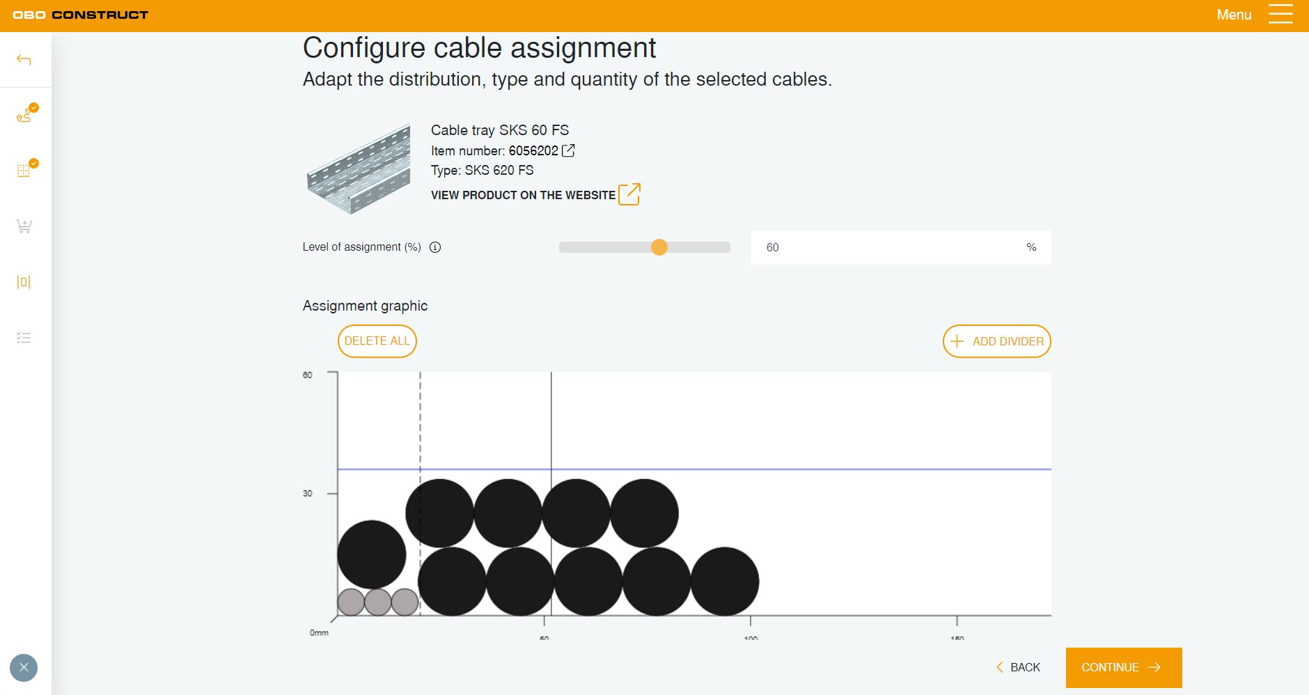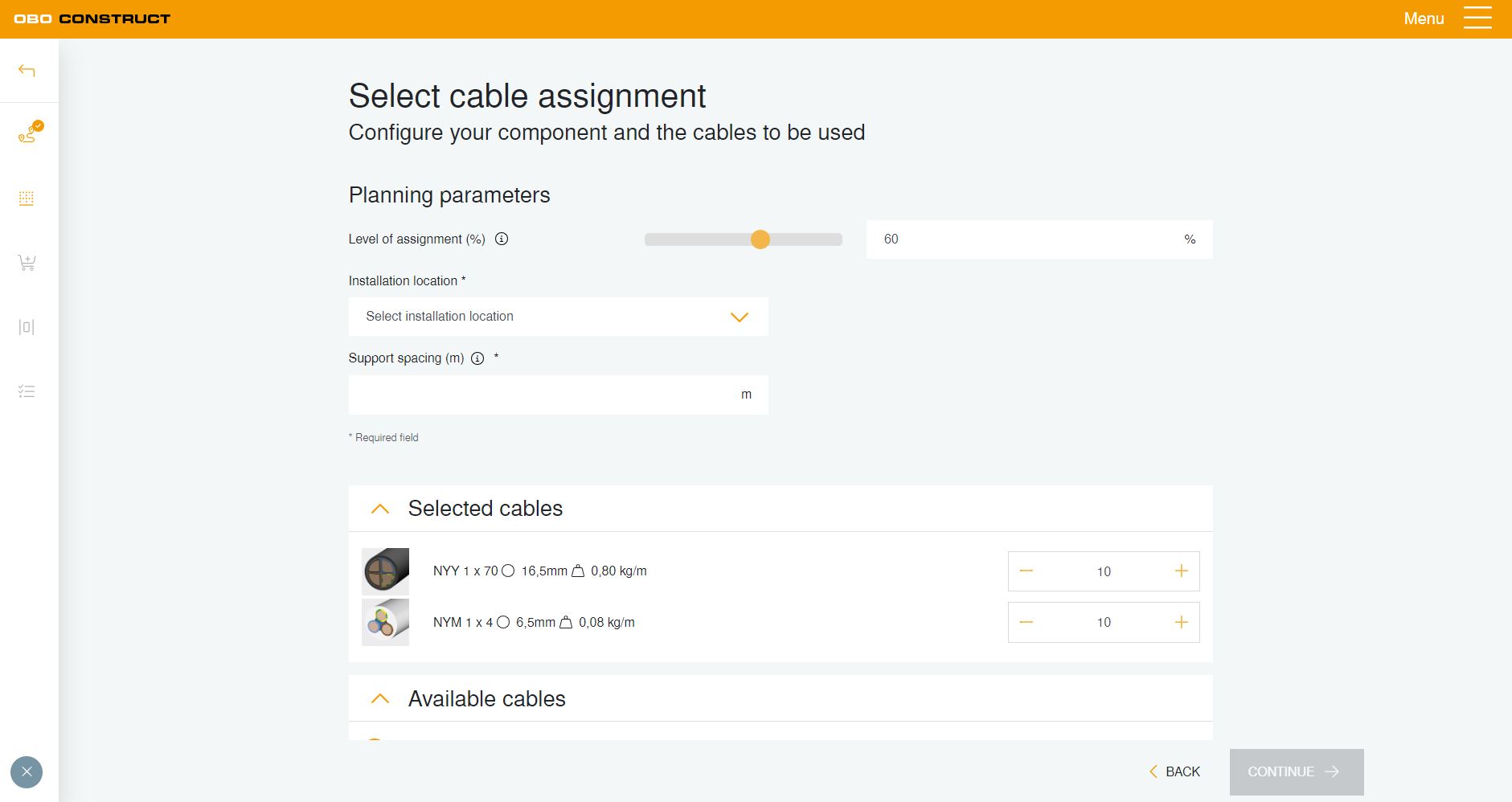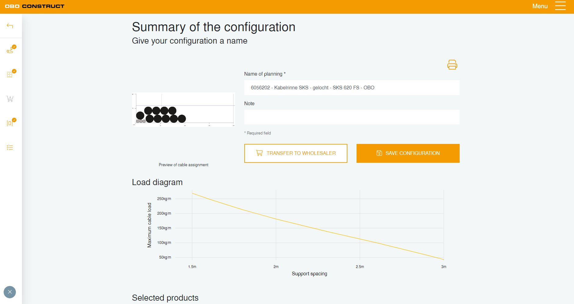 Nástroj na projektovanie umožňuje vypočítať množstvo káblov nielen pre káblové nosné systémy, ale aj pre podlahové kanály v rámci jedného projektu. Je možné zvoliť rôzne parametre osadenia, ako sú miesto inštalácie, rozstup podpier, stupeň obsadenia, ako aj množstvo a typ vedení a káblov, a tak krok za krokom viesť používateľa k výberu výrobku.