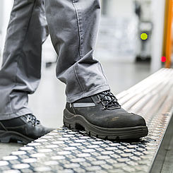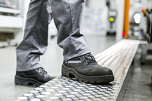 The chequer plate cover with newly developed chequer plate arrangement therefore ensures stability through optimum slip protection of class R11 according to DIN 51130, minimising the risk of accidents in daily use. Thanks to the V10 displacement space class, it is possible to walk safely on them, even in cases of serious contamination, such as with oils or greases.
