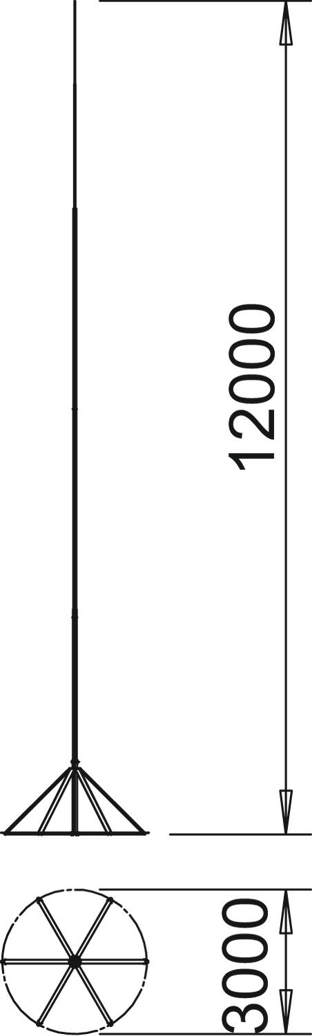Dĺžka 12000 mm Izolované vyhotovenie odolné voči vysokým napätiam nie Materiál Ušľachtilá oceľ, nehrdzavejúca 1.4301 Pripojenie Vodič kruhového prierezu Rozmer 12000mm Rozmer B 3000 mm Rozmer D min. 85 mm Rozmer L 12000 mm Vyhotovenie Záchytná tyč so statívom - Všetky typy