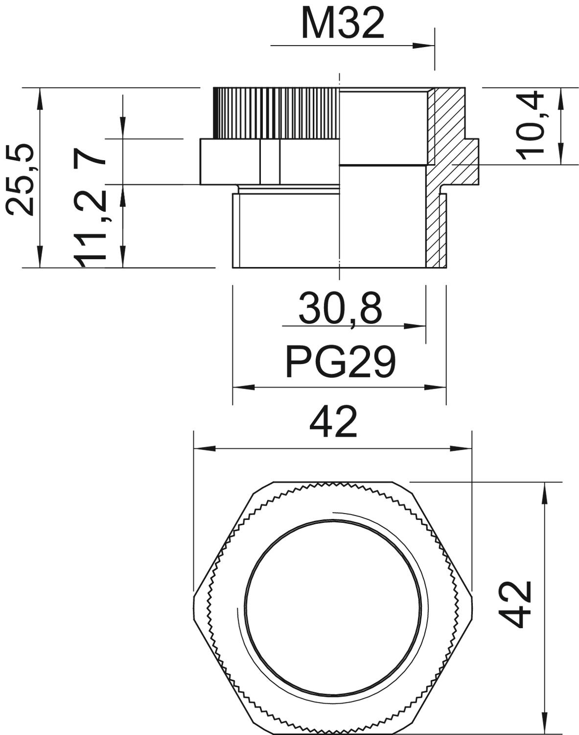 Popis produktuAdaptér z otvoru se závitem PG na otvor s metrickým závitem.