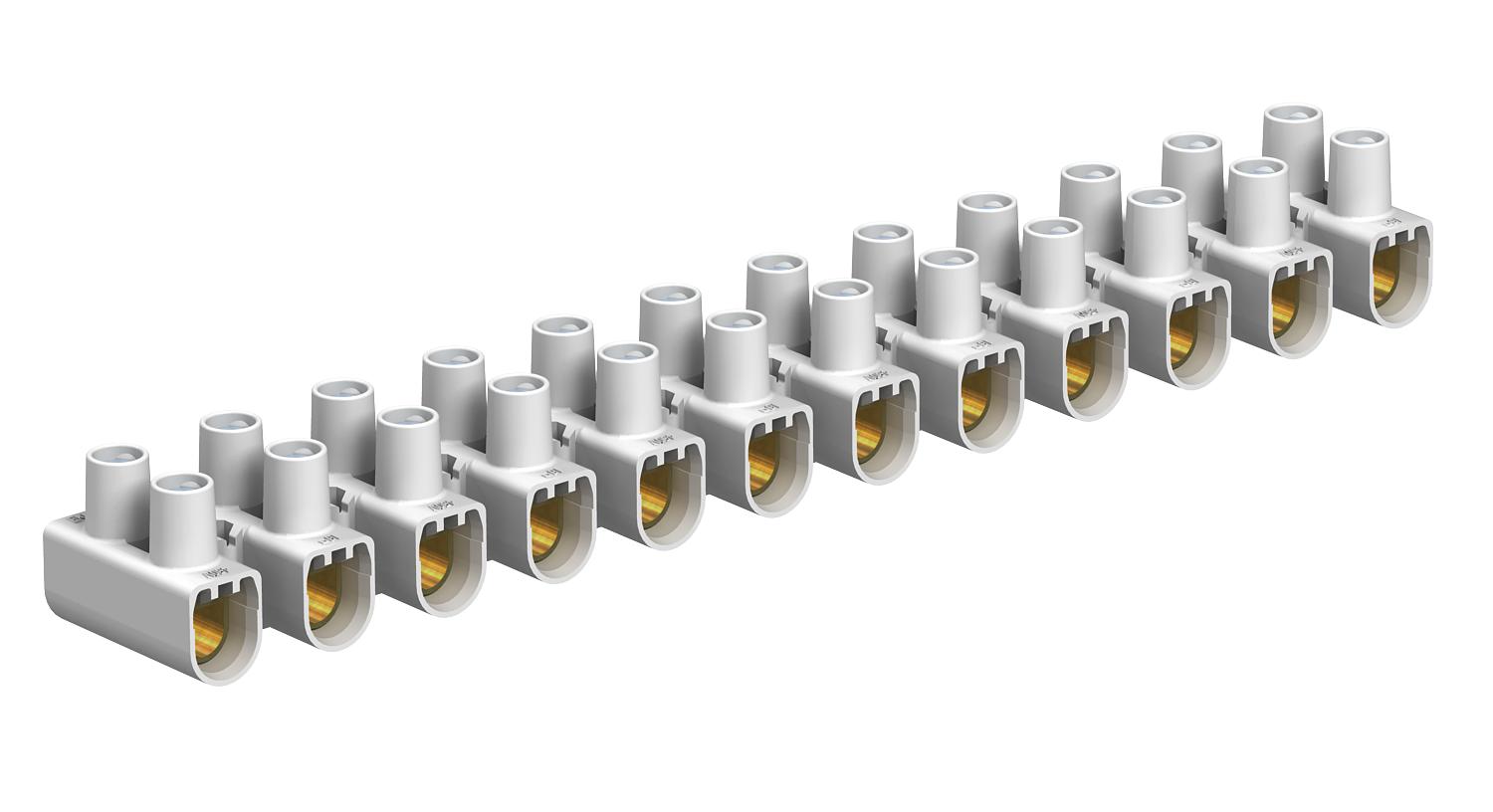 Svorky z oceli, šrouby z oceli, galvanicky zinkované, 12pólové, po jednotlivých svorkách oddělitelné lišty metodou „twist'n'pull“.