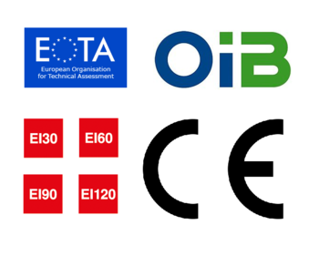 Výrobky prešli skúškami prestupov podľa STN EN 1366-3 a bolo im udelené Európske technické osvedčenie (ETA).