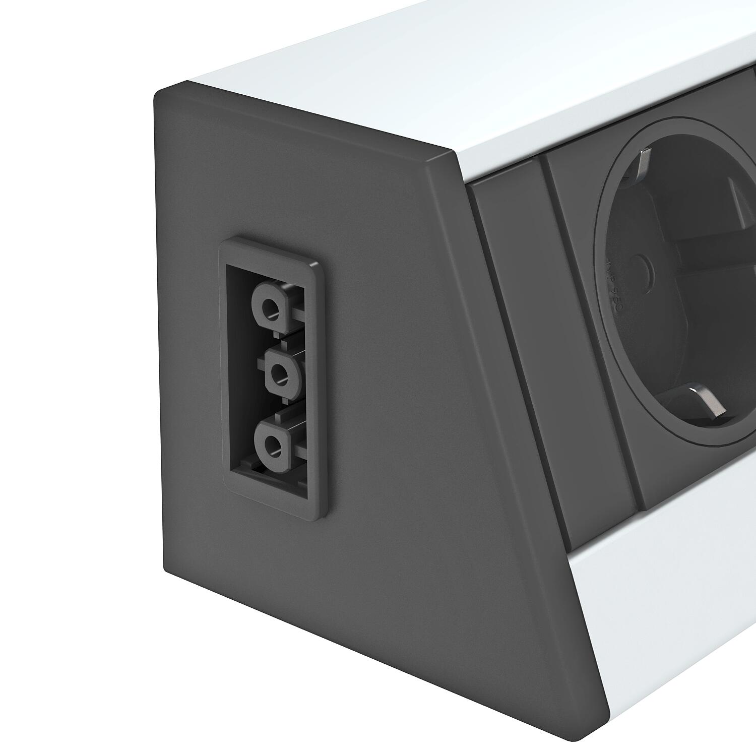 Popis produktuJednotka Deskbox s připojovacím kabelem, vývod kabelů zespodu z profilu, bez upevňovacího materiálu, možnost kombinování s upevňovacími prvky uvedenými mezi příslušenstvím.