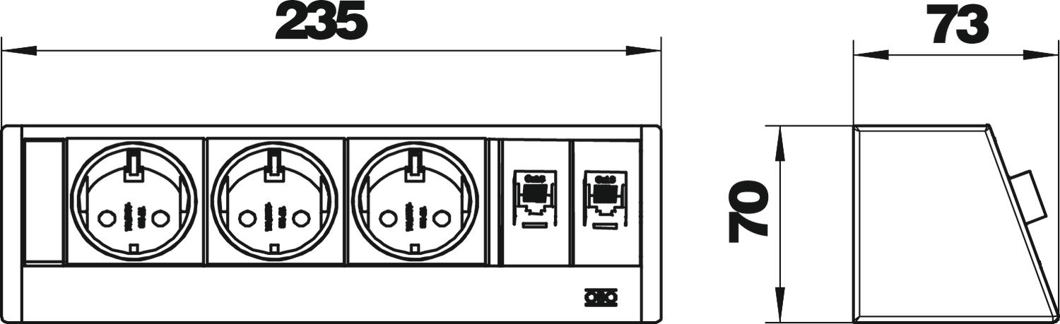 Dĺžka 235 mm Dĺžka prívodu 3 m Farba hliníková Materiál Hliník Ochrana pred prepätím nie Počet prípojok CAT 6 2 Počet zásuviek SCHUKO 3 Vyhotovenie Stříbrně eloxované pouzdro Výklopný nie Výška 70 mm Vyťahovateľný nie - Všetky typy