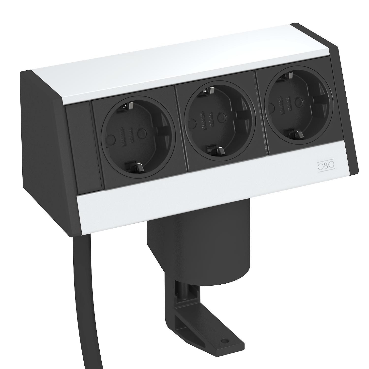Popis produktuJednotka Deskbox s připojovacím kabelem, vývod kabelů zespodu z profilu, s upevňovací svěrkou pro desky o tloušťce od 8 do 40 mm.