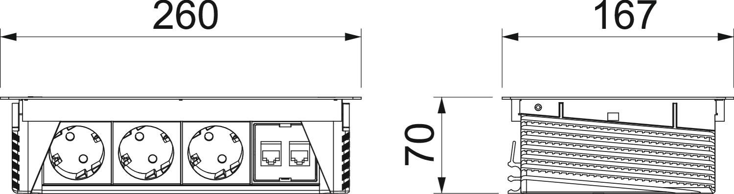 Dĺžka 260 mm Dĺžka prívodu 3 m Materiál Ušľachtilá oceľ, nehrdzavejúca 1.4301 Montážna hĺbka 68 mm Ochrana pred prepätím nie Počet prípojok CAT 6 2 Počet zásuviek SCHUKO 3 Rozmer 260x167x68 Výklopný áno Vyťahovateľný nie - Všetky typy