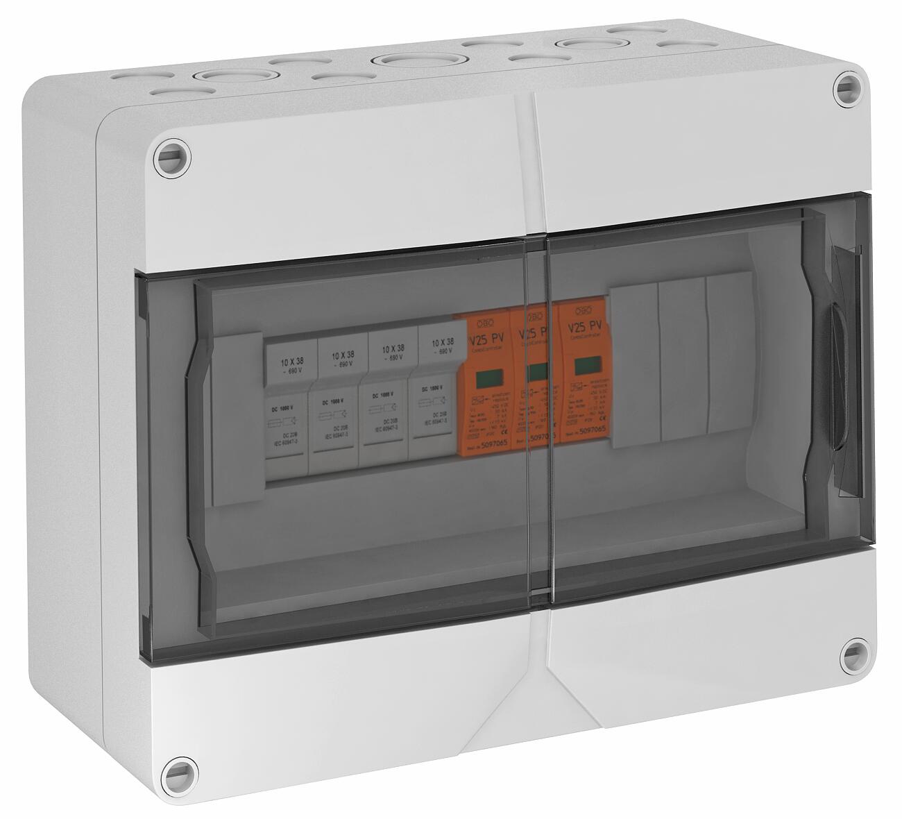 Popis produktuSystémové řešení s FV pojistkami (neosazeny) pro FV střídače s 1 MPP trackerem