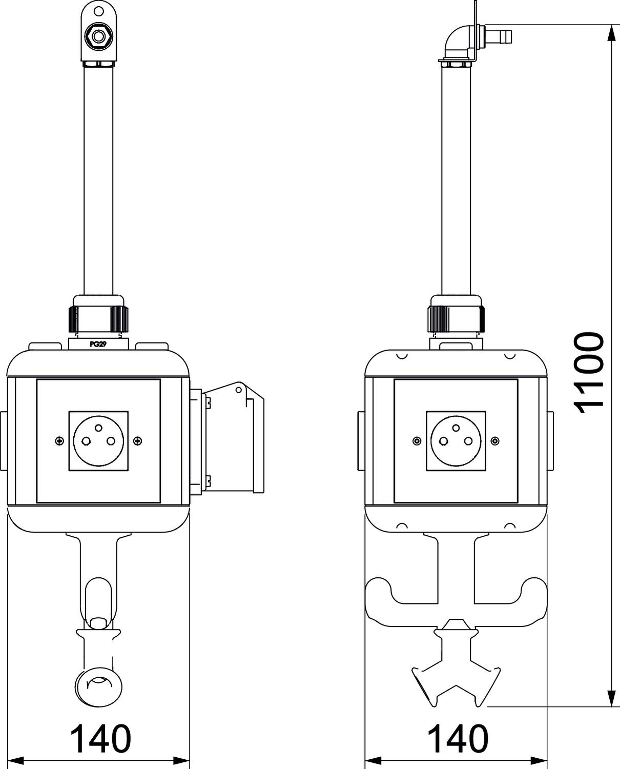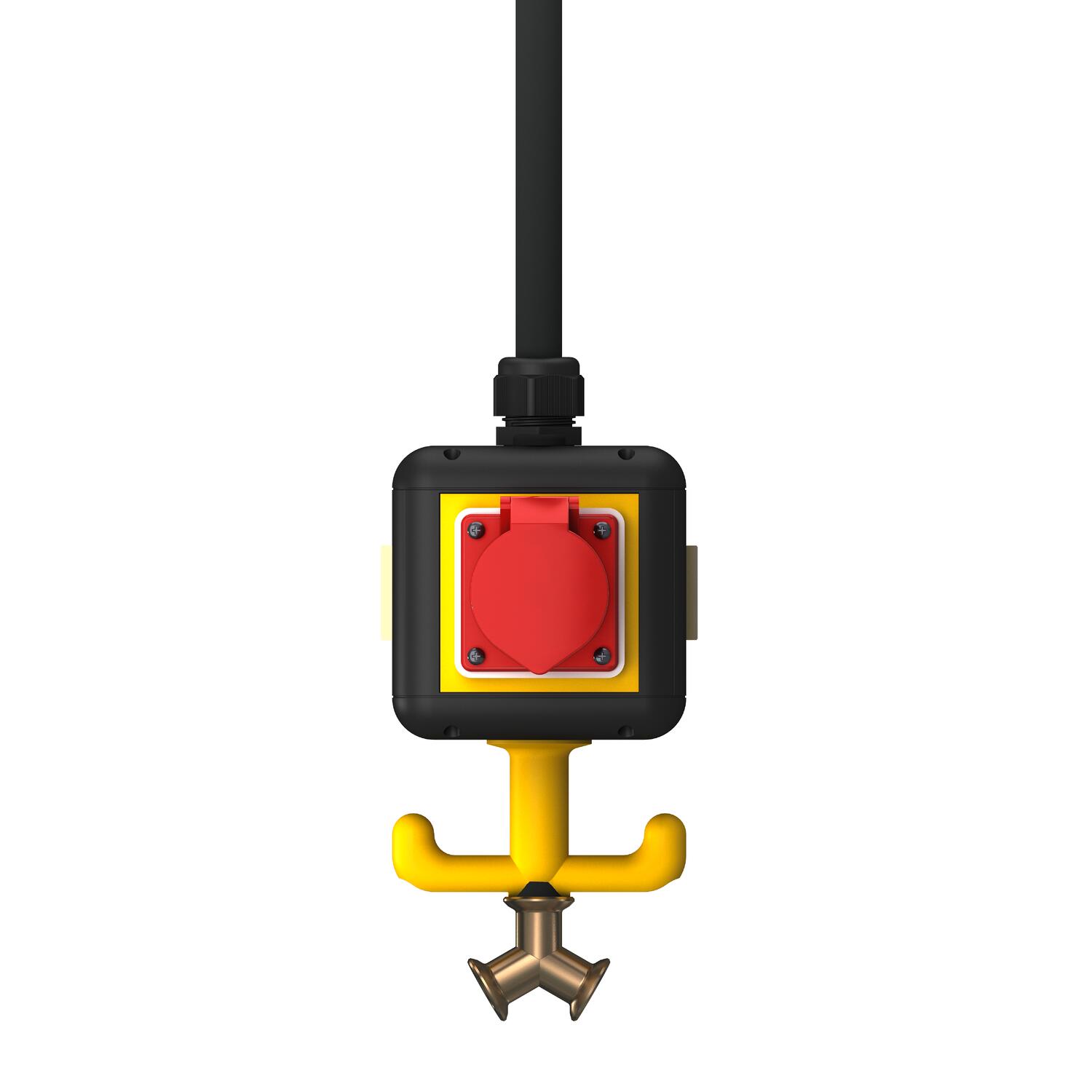 Popis produktuPouzdro osazeno a předem zapojeno, s metrovou trubkou 1/2", přípojkou pro hadici stlačeného vzduchu 13 × 3,5 mm a dvoucestným rozvodem 1/2", s okem, závěsným háčkem a čtyřmi krycími deskami.