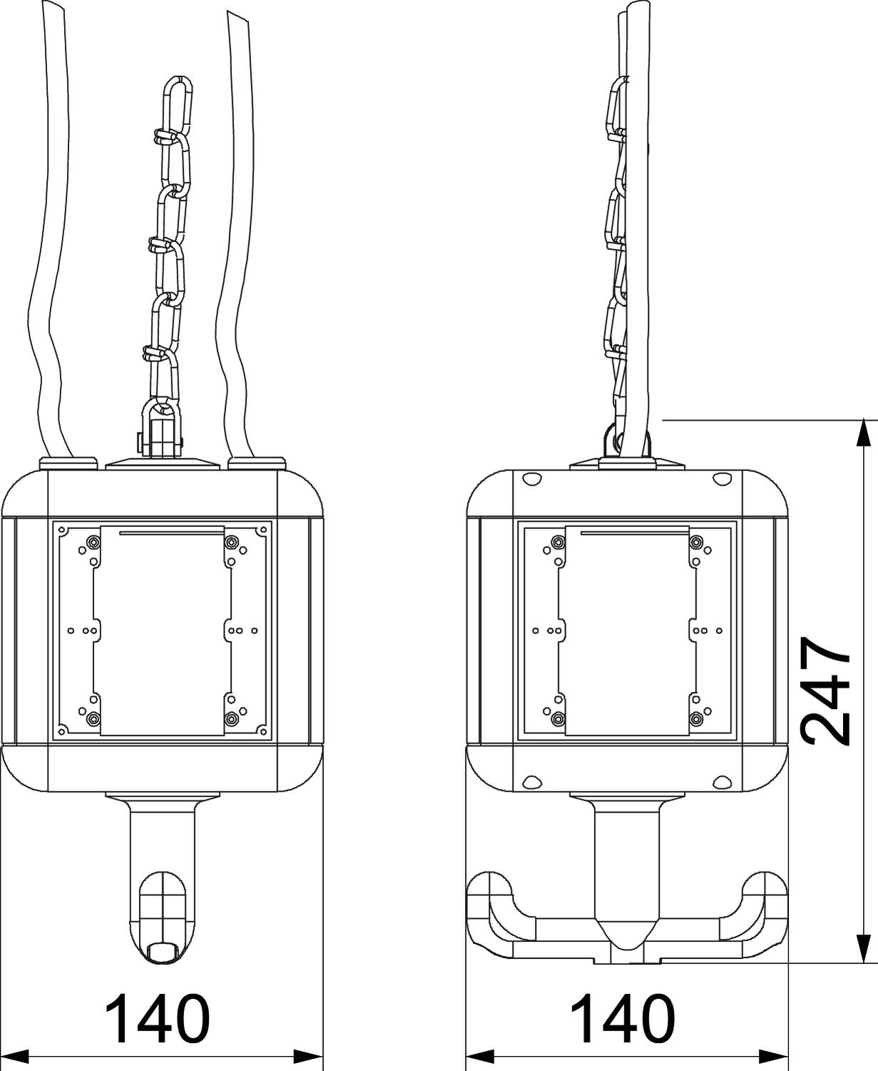Popis produktuPrázdné pouzdro s okem a závěsným háčkem, k vestavbě čtyř elektrických zařízení, s přiloženou přepážkou. Bez krycích desek.