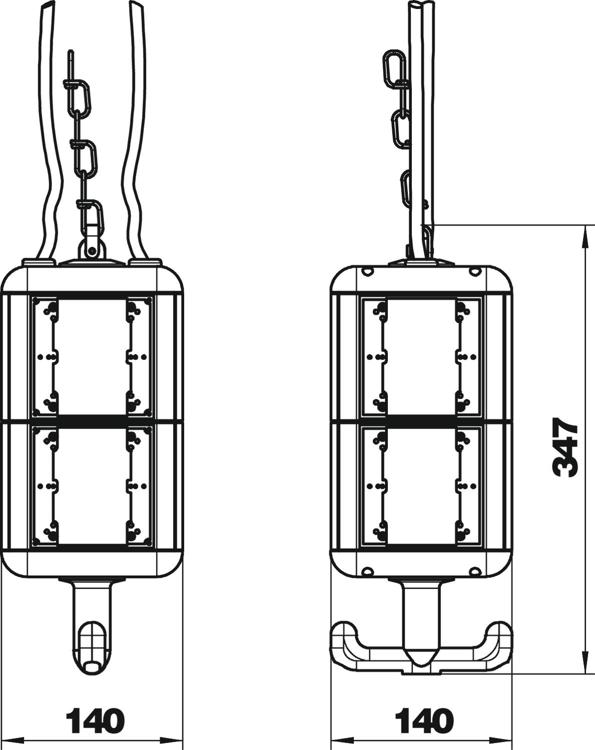 Popis produktuPrázdné pouzdro s okem a závěsným háčkem, k vestavbě osmi elektrických zařízení, s přiloženou přepážkou. Bez krycích desek.