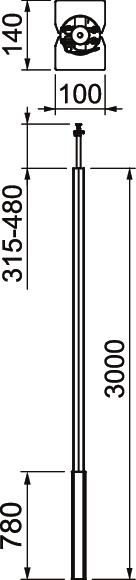 Popis produktuInštalačný stĺp ISS z hliníka s úzkou rúrou k stropu.