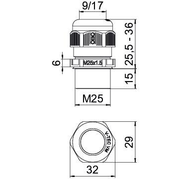 Popis produktuKabelová vývodka s metrickým připojovacím závitem kloboučkového tvaru, pro odbočné krabice, pouzdra, rozvodné skříně v soukromé i průmyslové oblasti. S odlehčením tahu a integrovaným těsnicím břitem, zkoušena podle normy EN 62444. Stupeň krytí IP68. Lze použít od –20 °C do +65 °C.