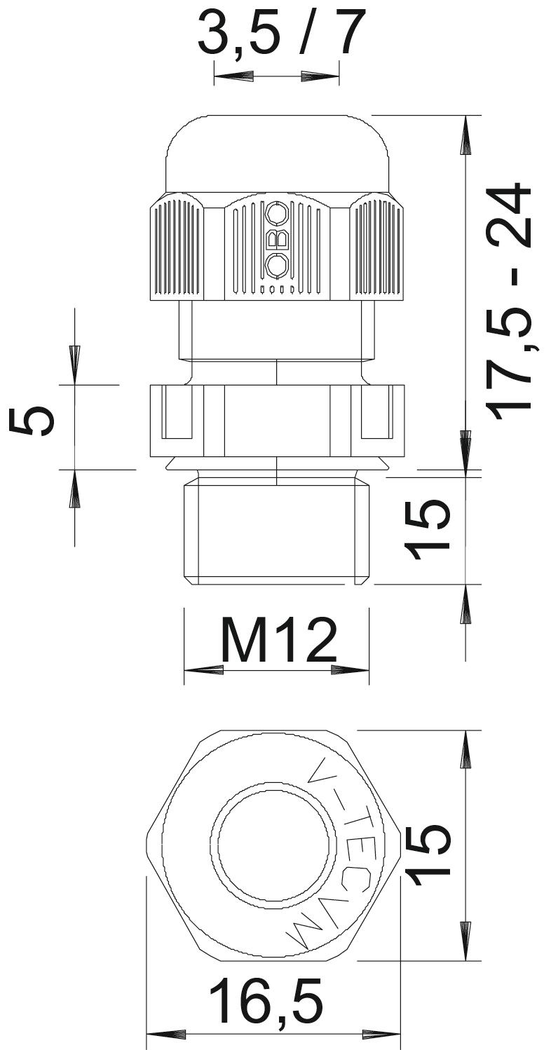 Popis produktuKabelová vývodka s metrickým připojovacím závitem kloboučkového tvaru, pro odbočné krabice, pouzdra, rozvodné skříně v soukromé i průmyslové oblasti. S odlehčením tahu a integrovaným těsnicím břitem, zkoušena podle normy EN 62444. Stupeň krytí IP68. Lze použít od –20 °C do +65 °C.