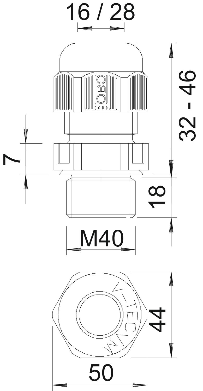 Bezhalogénový áno CO2 stopa (GWP) od kolísky po bránu 0,1795 kg CO2e / 1 Kus Dĺžka závitu 18 mm Druh tesnenia Tesniaci krúžok Druh závitu metrický Farba striebristosivá; RAL 7001 Materiál Polyamid Menovitá veľkosť závitu 40 Možnosť odľahčenia od ťahu áno Nárazuvzdorný nie Nestabilný uťahovací moment 10 Nm Oblasť utesnenia D max. 28 mm Oblasť utesnenia D min. 16 mm Ochrana proti ohybu nie ohňovzdorný podľa VDE 0471/DIN 695 časť 2-1, skúšobná teplota 650°C pre zónu Ex bez pre zónu Ex plyn bez pre zónu Ex prach bez Priechodka pre plochý kábel nie Rozmer M40 Rozmer E 50 mm Rozmer L max. 46 mm Rozmer L min. 32 mm Rozmer L1 18 mm Rozmer L2 7 mm Rozpojiteľný skrutkový spoj nie S kontramaticou nie s ochranou proti výbuchu nie Šesťhran rozmer cez hrany 50 mm Stúpanie závitu 1,5 mm Stupeň krytia IP68 Teplotný rozsah použitia max. 65 °C Teplotný rozsah použitia min. -20 °C Veľkosť kľúča 44 Viacnásobná tesniaca vložka nie Vyhotovenie rovný Vystužený skleným vláknom nie Závit M40 x 1,5 - Všetky typy