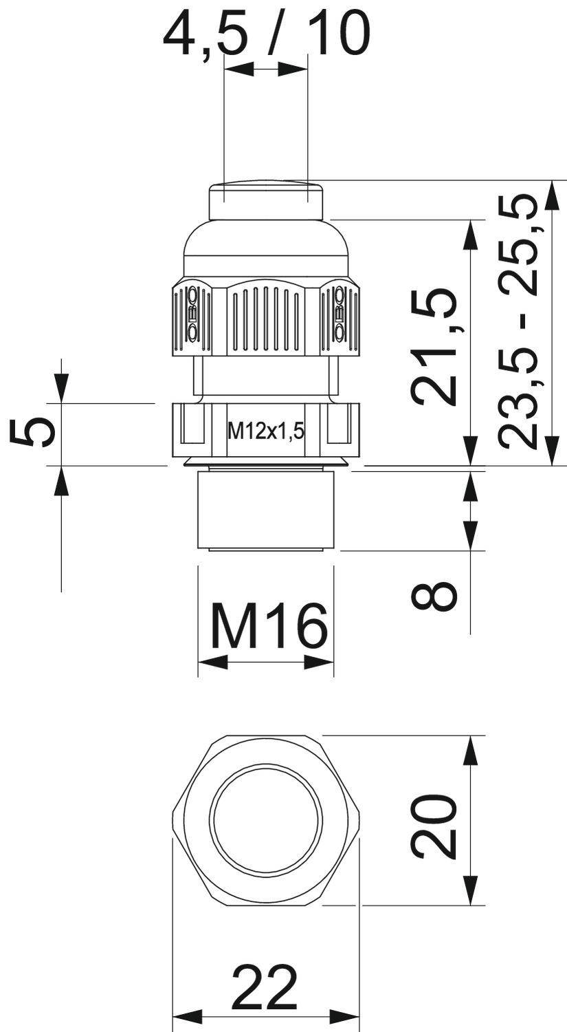 Popis produktuKabelová vývodka s metrickým připojovacím závitem kloboučkového tvaru, pro odbočné krabice, pouzdra, rozvodné skříně v soukromé i průmyslové oblasti. S odlehčením tahu a integrovaným těsnicím břitem, zkoušena podle normy EN 62444. Stupeň krytí IP68. Lze použít od –20 °C do +65 °C.