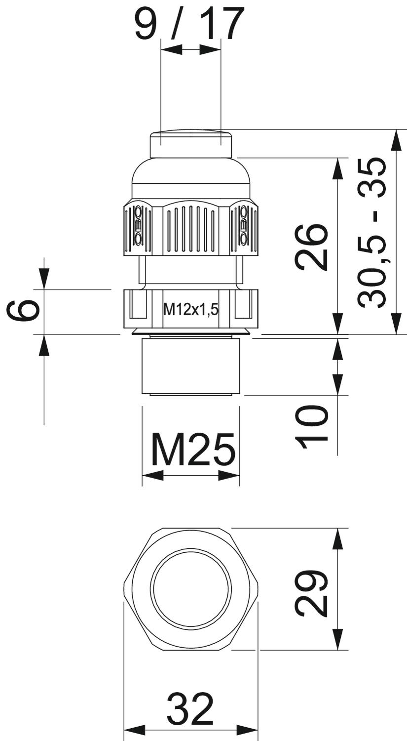 Bezhalogénový áno CO2 stopa (GWP) od kolísky po bránu 0,0728 kg CO2e / 1 Kus Dĺžka 30,5 mm Dĺžka závitu 10 mm Druh tesnenia Tesniaci krúžok Druh závitu metrický Farba svetlosivá; RAL 7035 Materiál Polyamid Menovitá veľkosť závitu 25 Možnosť odľahčenia od ťahu áno Nárazuvzdorný nie Oblasť utesnenia D max. 17 mm Oblasť utesnenia D min. 9 mm Ochrana proti ohybu nie ohňovzdorný podľa VDE 0471/DIN 695 časť 2-1, skúšobná teplota 650°C pre zónu Ex bez pre zónu Ex plyn bez pre zónu Ex prach bez Priechodka pre plochý kábel nie Rozmer M25 Rozmer E 32 mm Rozmer L max. 35 mm Rozmer L min. 30,5 mm Rozmer L1 10 mm Rozmer L2 6 mm Rozmer L3 26 mm Rozpojiteľný skrutkový spoj nie S kontramaticou nie s ochranou proti výbuchu nie Šesťhran rozmer cez hrany 32 mm Šírka 29 mm Stúpanie závitu 1,5 mm Stupeň krytia IP68 Teplotný rozsah použitia max. 65 °C Teplotný rozsah použitia min. -20 °C Veľkosť kľúča 29 Veľkosť kľúča 1 29 mm Viacnásobná tesniaca vložka nie Vyhotovenie rovný Výška 32 mm Vystužený skleným vláknom nie Závit M25 x 1,5 - Všetky typy
