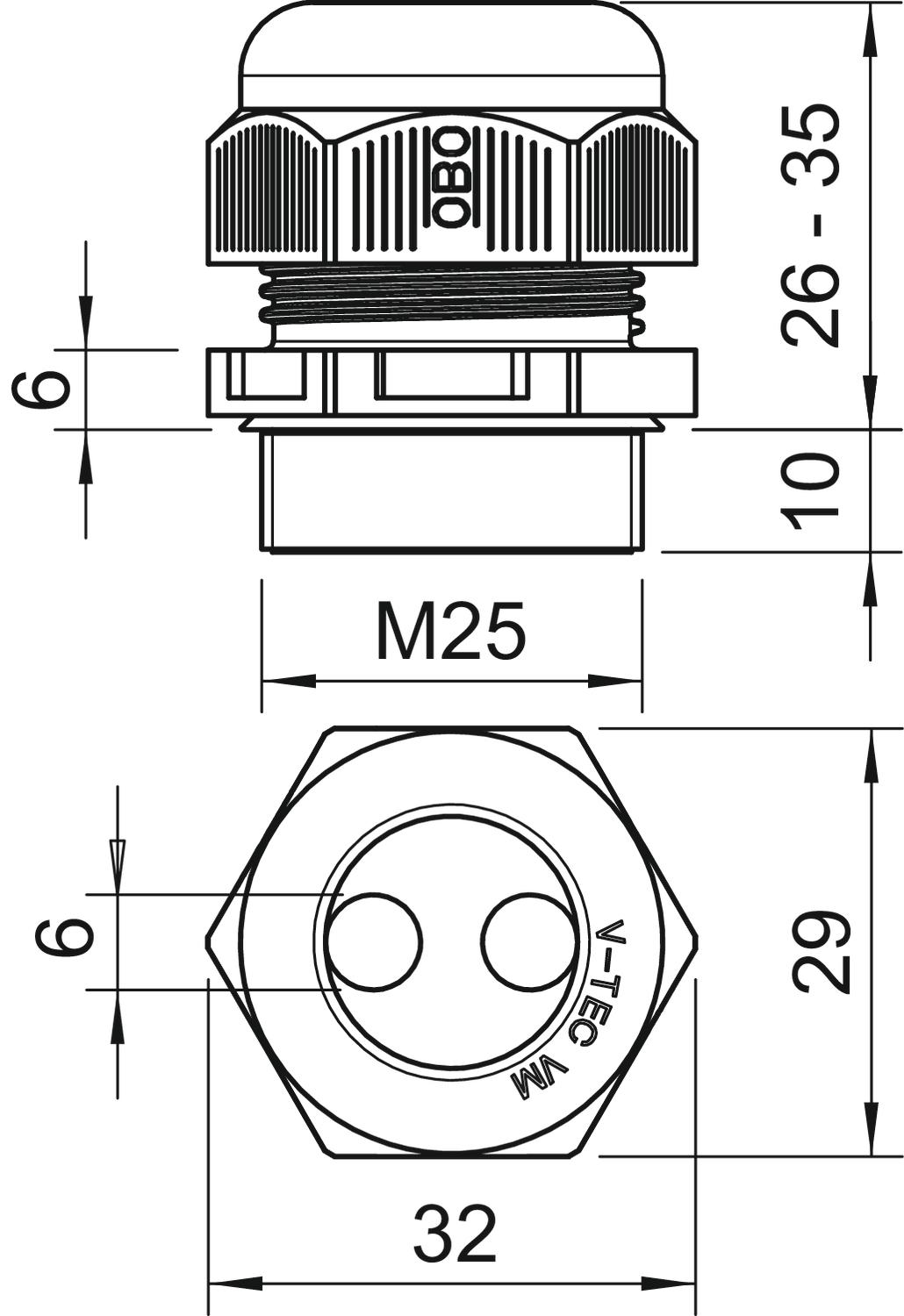 Popis produktuKabelová vývodka s metrickým připojovacím závitem kloboučkového tvaru, pro odbočné krabice, pouzdra, rozvodné skříně v soukromé i průmyslové oblasti. S odlehčením tahu a integrovaným těsnicím břitem, zkoušena podle normy EN 62444. Stupeň krytí IP68. Lze použít od –20 °C do +65 °C.