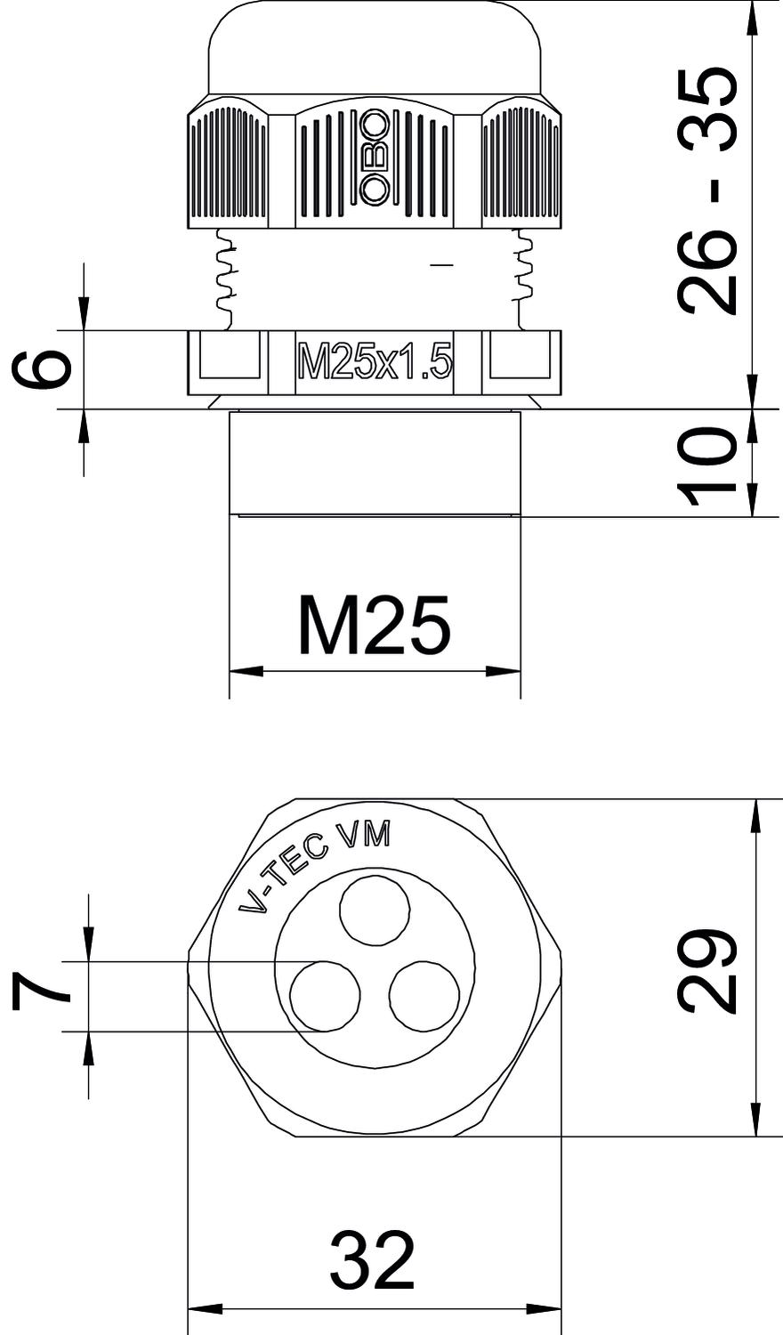 Popis produktuKabelová vývodka s metrickým připojovacím závitem kloboučkového tvaru, pro odbočné krabice, pouzdra, rozvodné skříně v soukromé i průmyslové oblasti. S odlehčením tahu a integrovaným těsnicím břitem, zkoušena podle normy EN 62444. Stupeň krytí IP68. Lze použít od –20 °C do +65 °C.