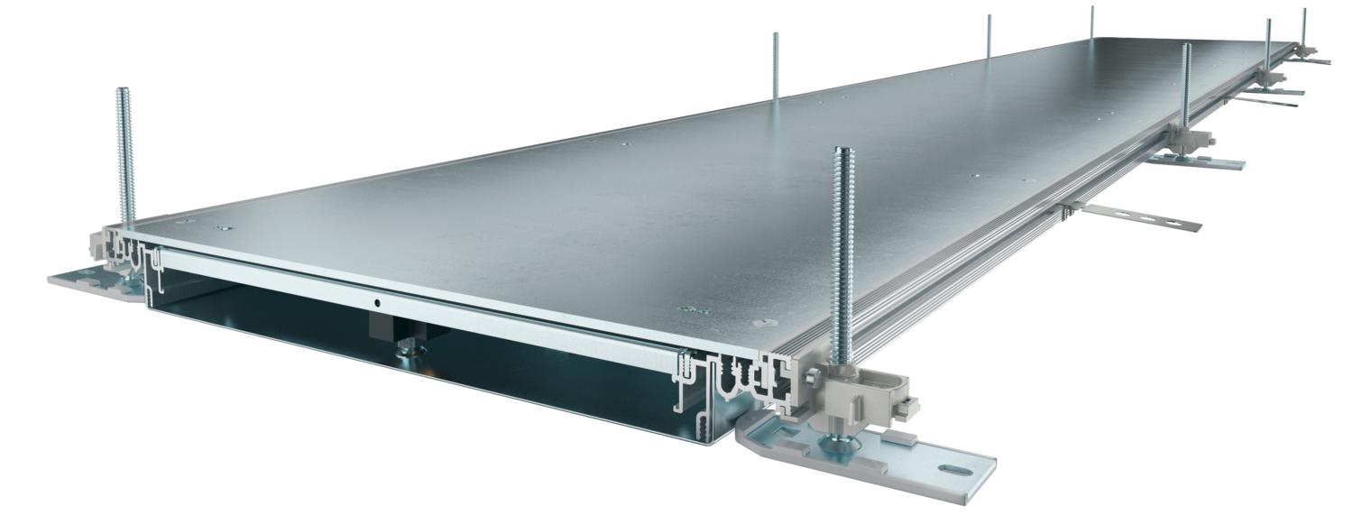 Popis produktuKanál připravený k montáži, se třemi samočinně zaklapávacími plnými víky k uložení vedení, sestávající ze spodního dílu kanálu (opěrka dna s bočnicemi a příložnými profily pro podlahovou krytinu) a víka kanálu. Opěrka dna s přidržovacími jazýčky pro samokontaktní montáž přepážek. Součástí dodávky je šest výškově nivelizovatelných upevňovacích úhelníků, šest kotev do mazaniny a těsnění víka (tři kusy u kanálů jmenovité šířky 200 a 300) nebo nivelizovatelné podpěry víka: tři kusy u kanálů jmenovité šířky 400 a šest kusů u kanálů jmenovité šířky 500 a 600. Víko kanálu je při dodání sešroubováno, zaklapávací prvky jsou namontovány.