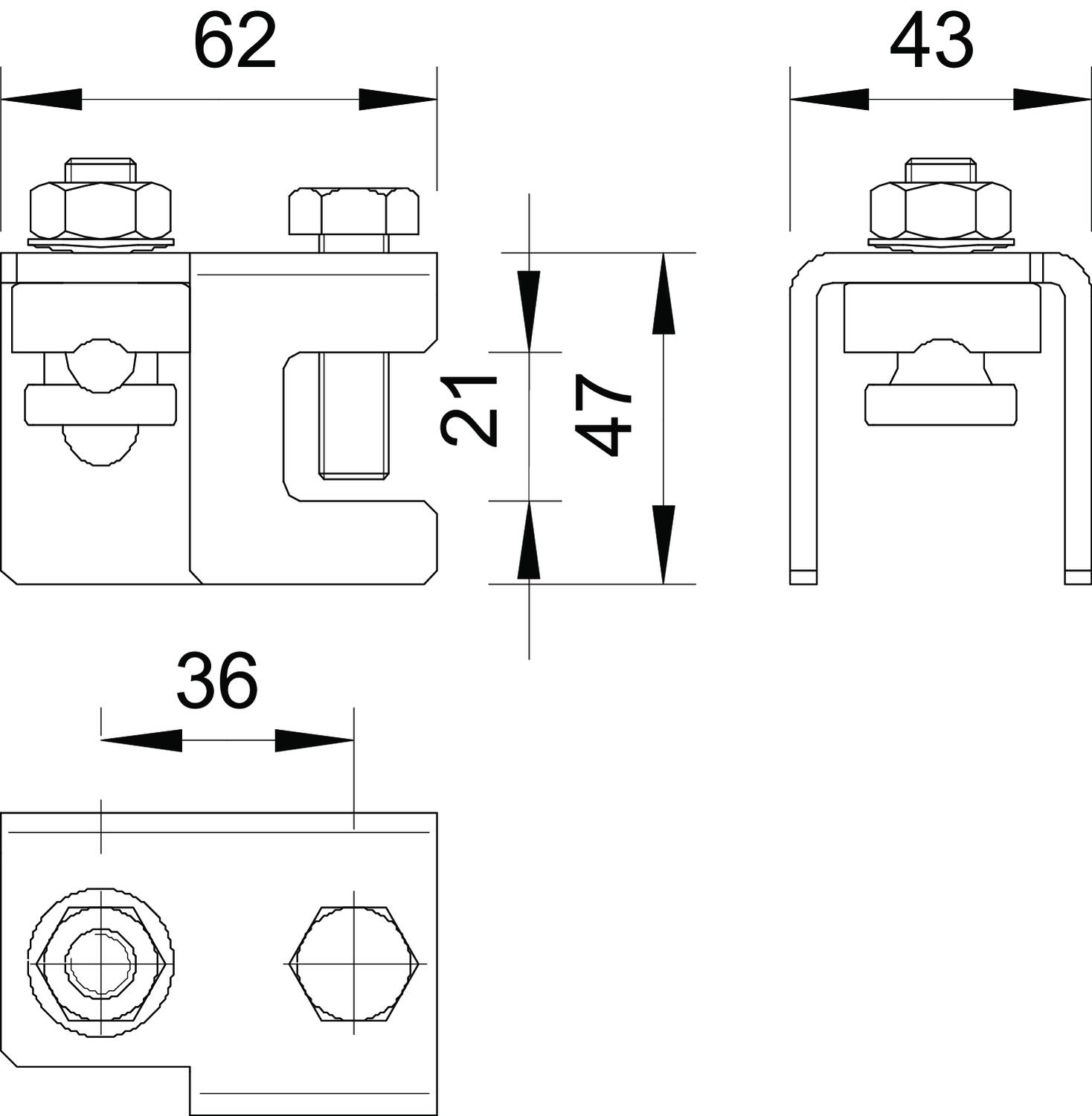 • Pro upevnění ke konstrukcím do tloušťky příruby až 20 mm