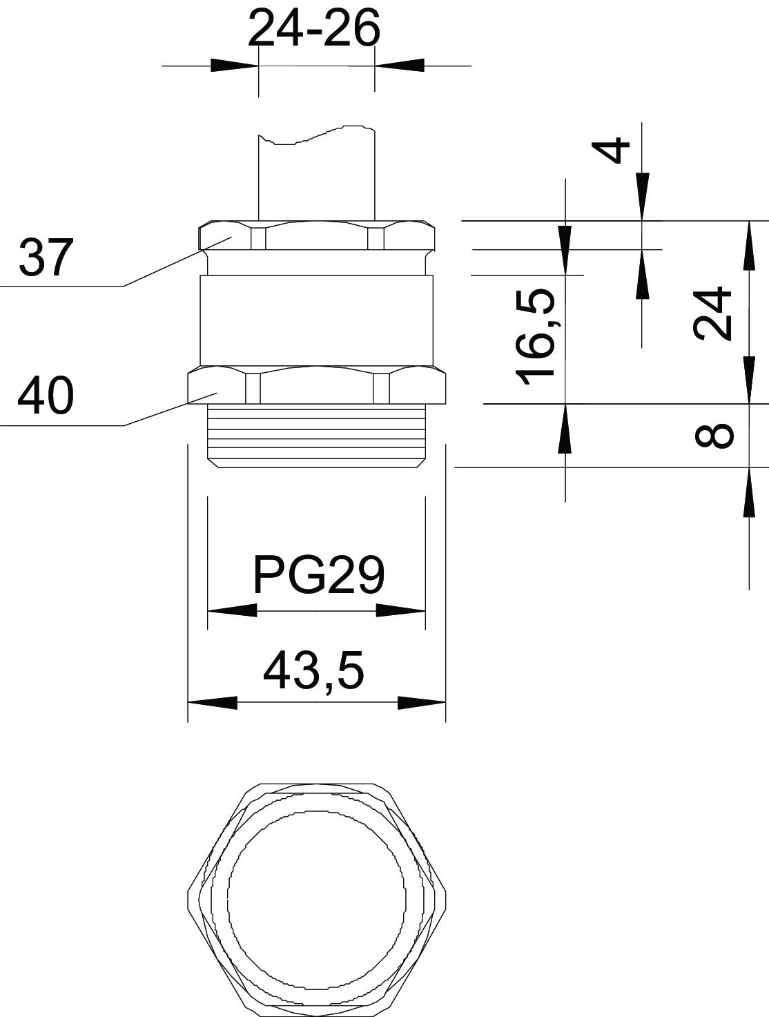 Popis produktuKabelová vývodka s šestihranným redukčním šroubením, tvar C4 dle DIN 46320 s připojovacím závitem PG dle normy DIN 40430.