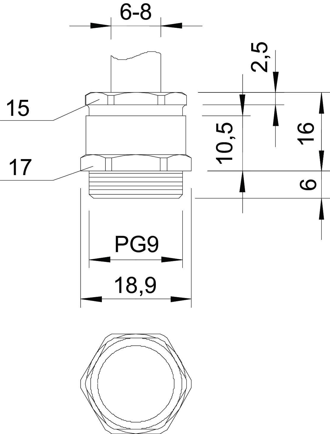 Popis produktuKabelová vývodka s šestihranným redukčním šroubením, tvar C4 dle DIN 46320 s připojovacím závitem PG dle normy DIN 40430.