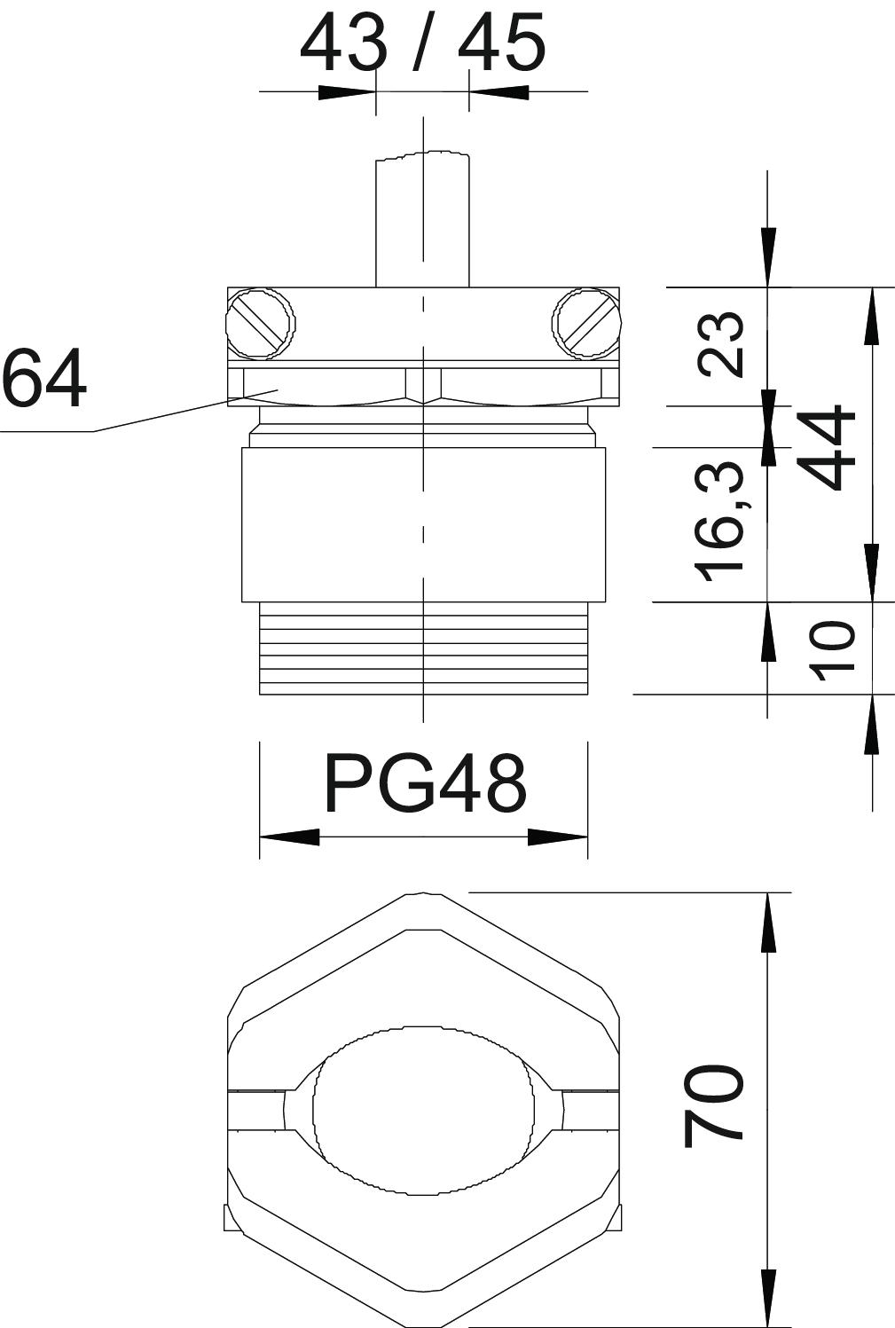 Bezhalogénový nie CO2 stopa (GWP) od kolísky po bránu 1,3339 kg CO2e / 1 Kus Dĺžka závitu 10 mm Druh tesnenia Tesniaci krúžok Druh závitu Pg Materiál mosadz Možnosť odľahčenia od ťahu áno Nárazuvzdorný nie Oblasť utesnenia D max. 45 mm Oblasť utesnenia D min. 43 mm Ochrana proti ohybu nie Povrch niklované pre zónu Ex bez Priechodka pre plochý kábel nie Rozmer PG48 Rozmer E 70 mm Rozmer L max. 44 mm Rozmer L1 10 mm Rozmer L2 23 mm Rozmer L3 16,3 mm S kontramaticou nie s ochranou proti výbuchu nie Stupeň krytia IP65 Veľkosť kľúča 64 Veľkosť kľúča 1 64 mm Veľkosť kľúča 2 64 mm Viacnásobná tesniaca vložka nie Vystužený skleným vláknom nie Závit Pg 48 - Všetky typy
