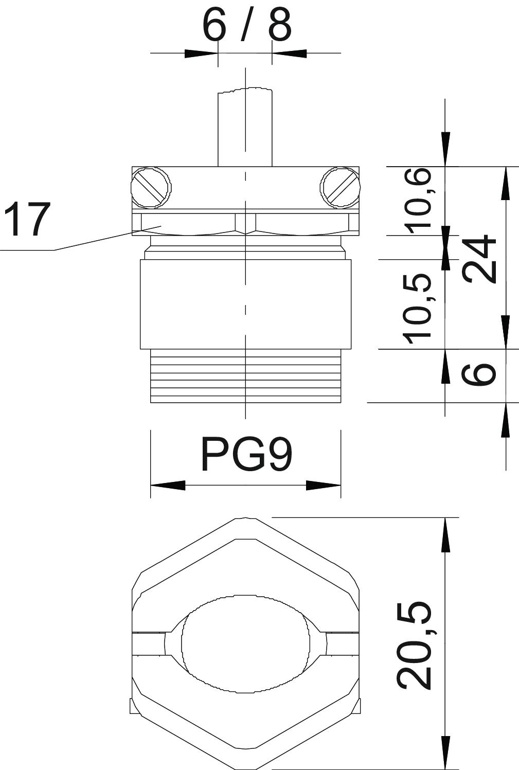 Bezhalogénový nie CO2 stopa (GWP) od kolísky po bránu 0,0813 kg CO2e / 1 Kus Dĺžka závitu 6 mm Druh tesnenia Tesniaci krúžok Druh závitu Pg Materiál mosadz Možnosť odľahčenia od ťahu áno Nárazuvzdorný nie Oblasť utesnenia D max. 8 mm Oblasť utesnenia D min. 6 mm Ochrana proti ohybu nie Povrch niklované pre zónu Ex bez Priechodka pre plochý kábel nie Rozmer PG9 Rozmer E 20,5 mm Rozmer L max. 24 mm Rozmer L1 6 mm Rozmer L2 10,5 mm Rozmer L3 10,6 mm S kontramaticou nie s ochranou proti výbuchu nie Stupeň krytia IP54 Veľkosť kľúča 17 Veľkosť kľúča 1 17 mm Veľkosť kľúča 2 19 mm Viacnásobná tesniaca vložka nie Vystužený skleným vláknom nie Závit Pg 9 - Všetky typy