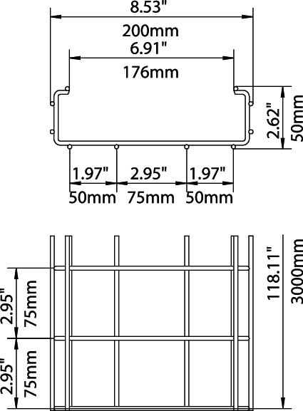 CO2 stopa (GWP) od kolísky po bránu 8,8319 kg CO2e / 1 meter Dĺžka 3000 mm Druh spojky káblového nosného systému priskrutkované Farba nehrdzavejúca oceľ Integrovaná deliaca stena bez Materiál Ušľachtilá oceľ, nehrdzavejúca 1.4301 Nehrdzavejúca oceľ, morená áno Povrch lesklá, dodatočne upravená Prevedenie spojky bez spojky Priemer drôtu 4,5 mm Rozmer 50x200x3000 Rozmer A 176 mm Rozmer B 217 mm Rozmer H 67 mm Rozmer l1 75 mm Rozmer l2 (mm) 50 mm Šírka 200 mm Šírka 7,87 in Tvar profilu Tvar C Typ testu zaťaženia podľa IEC 61537 Typ II Úžitkový prierez 74 cm² Úžitkový prierez 7400 mm² Vyhotovenie s veľkým rozpätím nie Výška 50 mm Výška 1,97 in Vzdialenosť podpier 1,0 m 1,1 kN/m Vzdialenosť podpier 1,5 m 0,7 kN/m Vzdialenosť podpier 2,0 m 0,4 kN/m Zachovanie funkčnosti nie Technické údaje