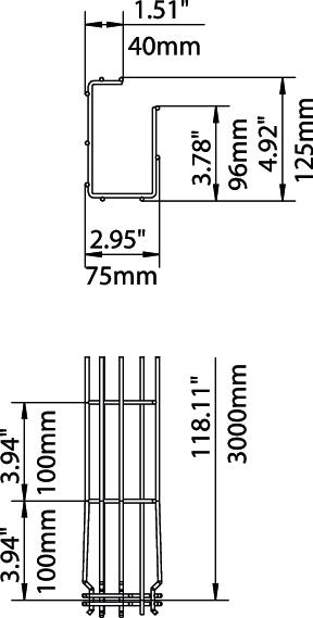 Popis produktuMřížový žlab ve tvaru G z bodově svařovaného ocelového drátu s různými výškami bočnic a šířkami.