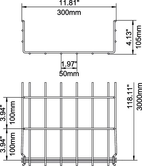 Popis produktuMřížový žlab s vytvarovanou integrovanou spojkou s výškou bočnice 105 mm.