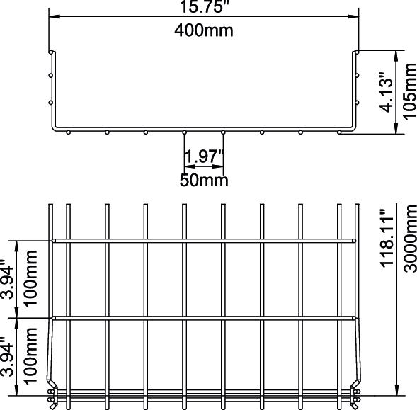 Popis produktuMřížový žlab s vytvarovanou integrovanou spojkou s výškou bočnice 105 mm.