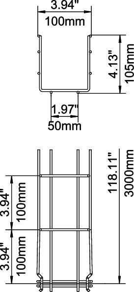 Pro mřížový žlab nejsou nutné žádné další spojovací prvky, díly se jednoduše navzájem zasunou. Rozměr ok je 50 x 100 mm.