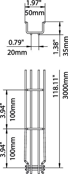 Bezskrutková spojka áno CO2 stopa (GWP) od kolísky po bránu 0,8706 kg CO2e / 1 meter Dĺžka 3000 mm Druh spojky káblového nosného systému Upevnenie zaklapnutím Farba pozinkováno Integrovaná deliaca stena bez Materiál Oceľ Nehrdzavejúca oceľ, morená nie Povrch galvanicky zinkované Prevedenie spojky integrovaná spojka Priemer drôtu 3,9 mm Rozmer 35x50x3000 Rozmer B 52 mm Šírka 50 mm Šírka 1,97 in Tvar profilu Tvar U Typ testu zaťaženia podľa IEC 61537 Typ II Úžitkový prierez 9,4 cm² Úžitkový prierez 1750 mm² Vyhotovenie s veľkým rozpätím nie Výška 1 in Výška 35 mm Vzdialenosť podpier 1,0 m 0,25 kN/m Vzdialenosť podpier 1,5 m 0,11 kN/m Vzdialenosť podpier 2,0 m 0,1 kN/m Zachovanie funkčnosti nie Technické údaje