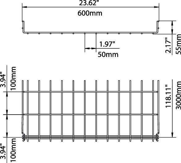 Popis produktuMřížový žlab s vytvarovanou integrovanou spojkou s výškou bočnice 55 mm.