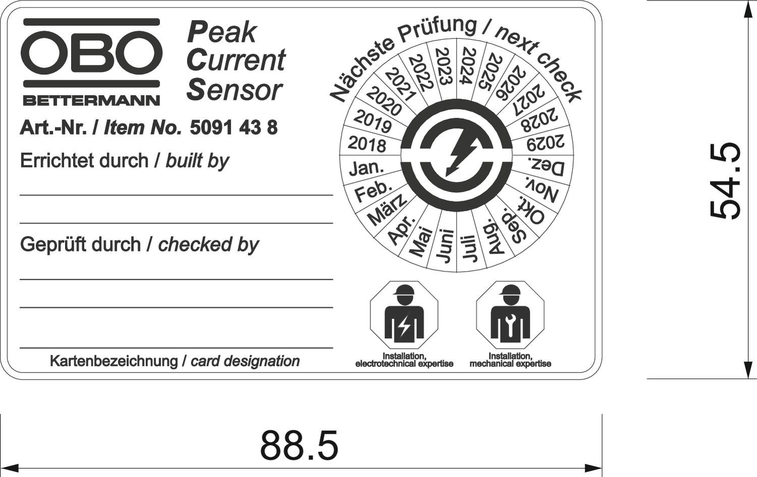 Popis produktuSnímač Peak-Current (PCS) – karta pro záznam impulzních/bleskových proudů. Provozovatelé systémů, firmy specializované na ochranu před bleskem a znalci mohou kdykoli zkontrolovat, zda do systému ochrany před bleskem udeřil blesk a jak vysoký byl poslední bleskový proud v kA. Natištěný servisní kruh a popisová pole podporují provádění údržby celého systému ochrany před bleskem v časových intervalech definovaných v normě IEC/EN 62305-3 (VDE 0185-305-3)
