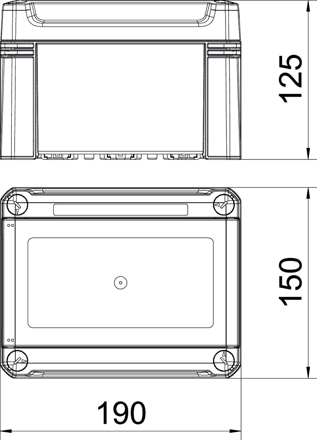 Minirozváděč na omítku, ochranná izolace pro max. 3 dílčí jednotky, na horní a dolní straně je po 3 vylamovacích otvorech (2× Ø 20 a 1× Ø 20/25) vč. předem namontované 35mm nosné profilové lišty. Čtyři dodávané šroubovací krytky zamezují nechtěnému „zavlečení napětí“.