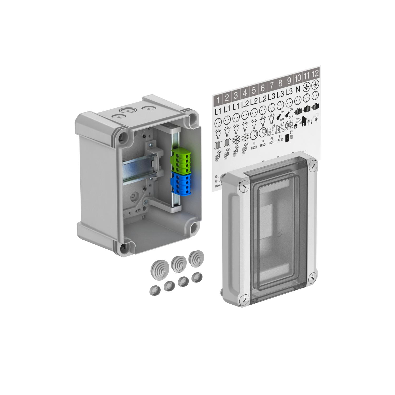 Popis produktuMinirozváděč se svorkovnicí pro montáž na omítku, pro podružný rozvod elektrického proudu v interiéru a v chráněném venkovním prostoru, podle IEC 439-3. S předem namontovanou 35mm přístrojovou lištou. Stupeň krytí IP66 a stupeň ochrany IK06. Transparentní víko k přišroubování, s výřezem.