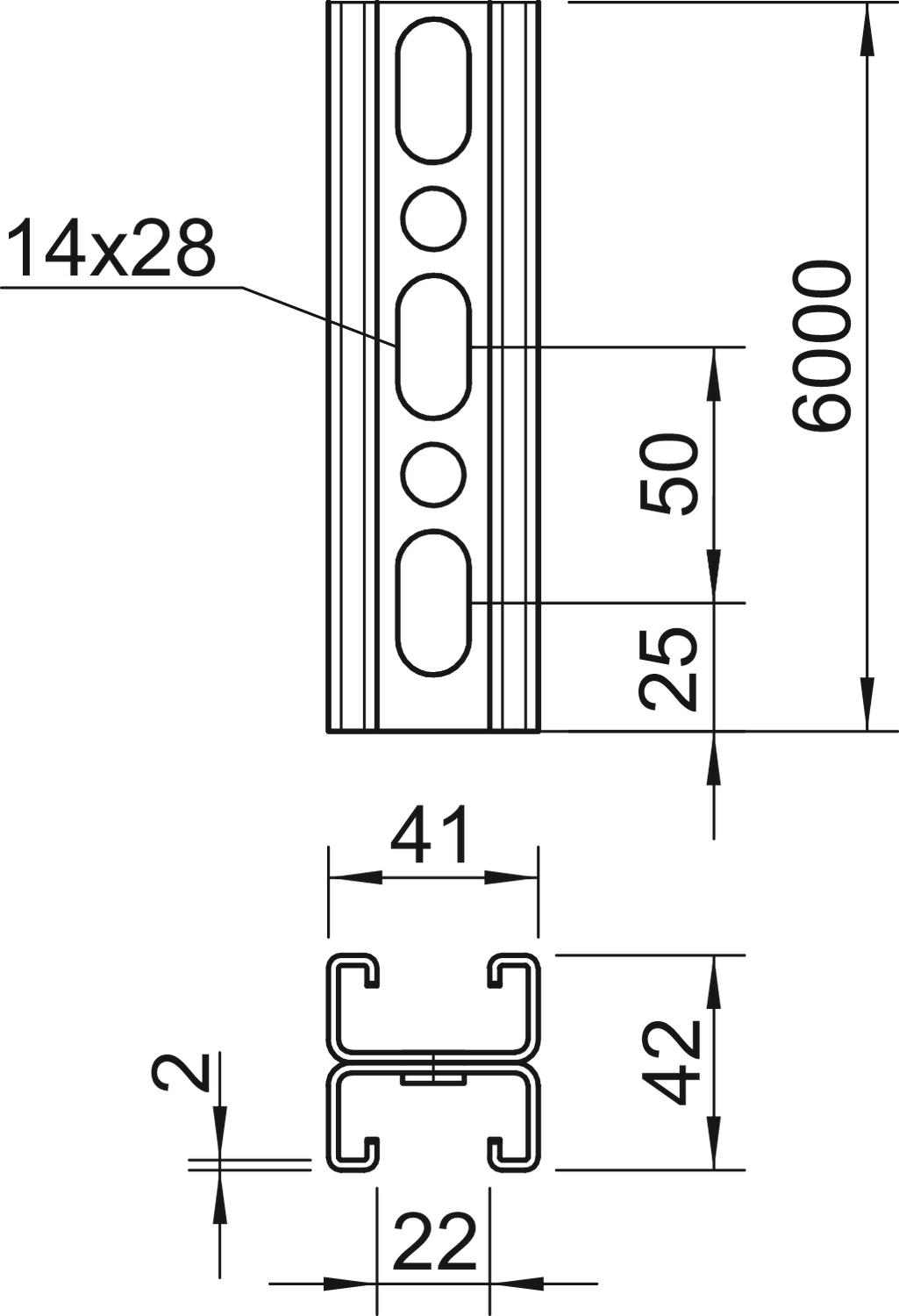 Popis produktuProfilová/montážní lišta s průběžným podélným děrováním ve dnu, v těžkém provedení, s šířkou výřezu 22 mm. V dvojitém provedení, tj. na dně jsou vzájemně propojeny dvě profilové lišty (tvářený spoj).