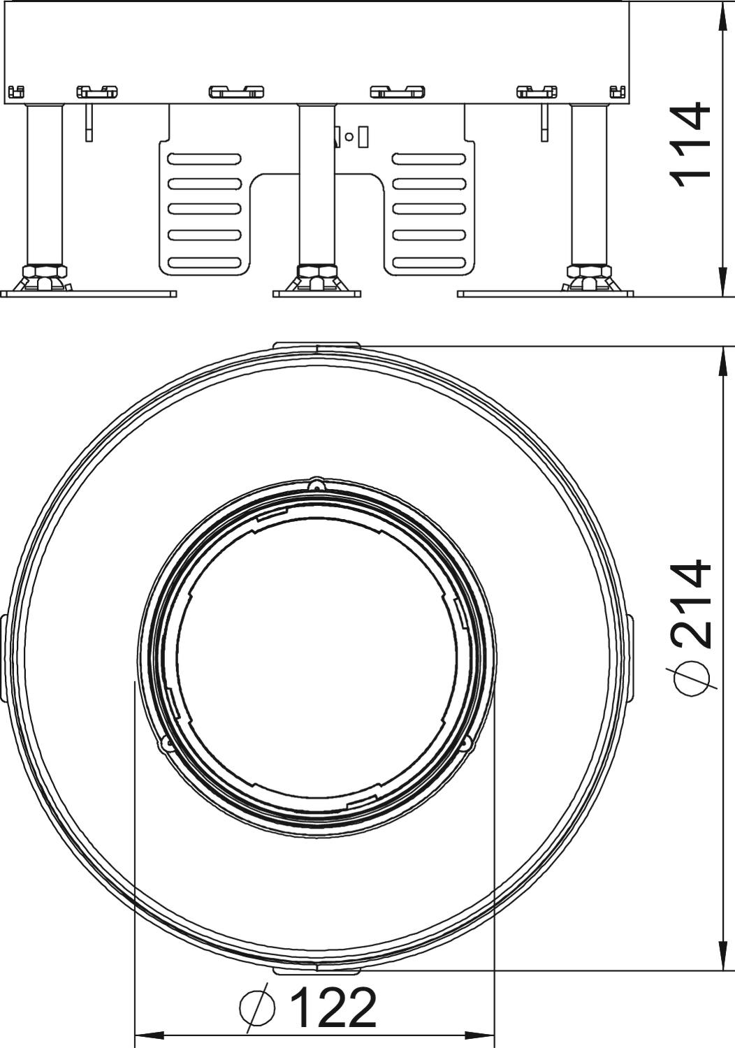 Popis produktuOkrúhla kazeta pre vysokú záťaž pre tubus v menovitej veľkosti R4 na zabudovanie inštalačných prístrojov do kanálových systémov, dvojitých a dutých podláh, podláh ošetrovaných nasucho alebo namokro v interiéri. Trieda zaťaženia 2 do 20 kN.
