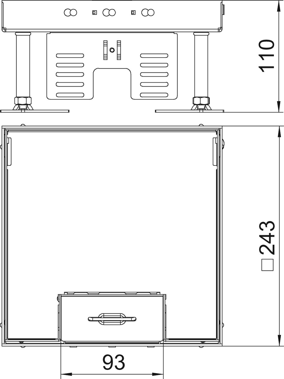 Nivelovatelná čtvercová kazeta, 3komorová, jmenovité velikosti 9 se šňůrovým vývodem k vestavbě instalačních přístrojů. Vhodná pro použití v kanálových systémech nebo dvojitých a dutých podlahách se suchou údržbou v interiéru. Lze instalovat 3 kryty APMT5. Vhodná jen pro hladké podlahové krytiny.