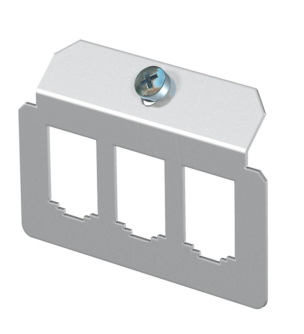 Popis produktuNosná deska k uchycení tří datových modulárních zásuvek následujících typů BTR: E-DAT; Dätwyler: MS a MS-N; Kerpen: VarioKeystone.