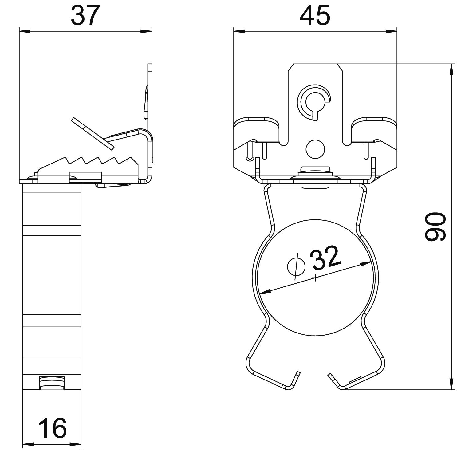Dĺžka 90 mm Druh pripojenia/konštrukčný prvok Rúra/kábel Farba pozinkováno Hrúbka príruby F max. 7 mm Hrúbka príruby F min. 3 mm Koniec závesu nie Materiál Oceľ Povrch Zinková lamela Priemer rúry/kábla max. 32 mm Priemer rúry/kábla min. 30 mm Rozmer 3-7mm Rozmer L 90 mm Šírka 45 mm Spôsob upevnenia Svorky Výška 37 mm Zaťaženie na medzi pevnosti 0,45 kN Záves nastaviteľný nie - Všetky typy