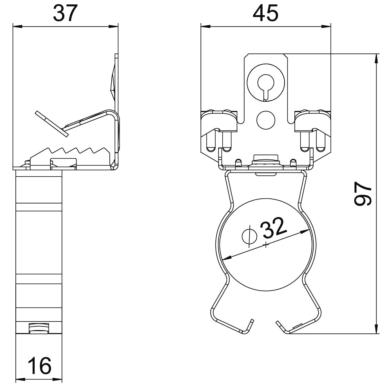 Dĺžka 97 mm Druh pripojenia/konštrukčný prvok Rúra/kábel Farba pozinkováno Hrúbka príruby F max. 13 mm Hrúbka príruby F min. 7 mm Koniec závesu nie Materiál Oceľ Povrch Zinková lamela Priemer rúry/kábla max. 32 mm Priemer rúry/kábla min. 30 mm Rozmer 7-13mm Rozmer L 97 mm Šírka 45 mm Spôsob upevnenia Svorky Výška 37 mm Zaťaženie na medzi pevnosti 0,45 kN Záves nastaviteľný nie - Všetky typy