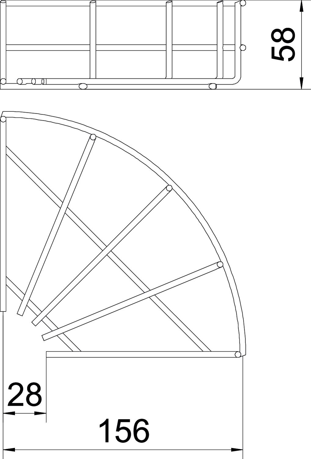 Popis produktuOblouk 90°, horizontální, pro mřížové žlaby s výškou bočnice 55 mm.