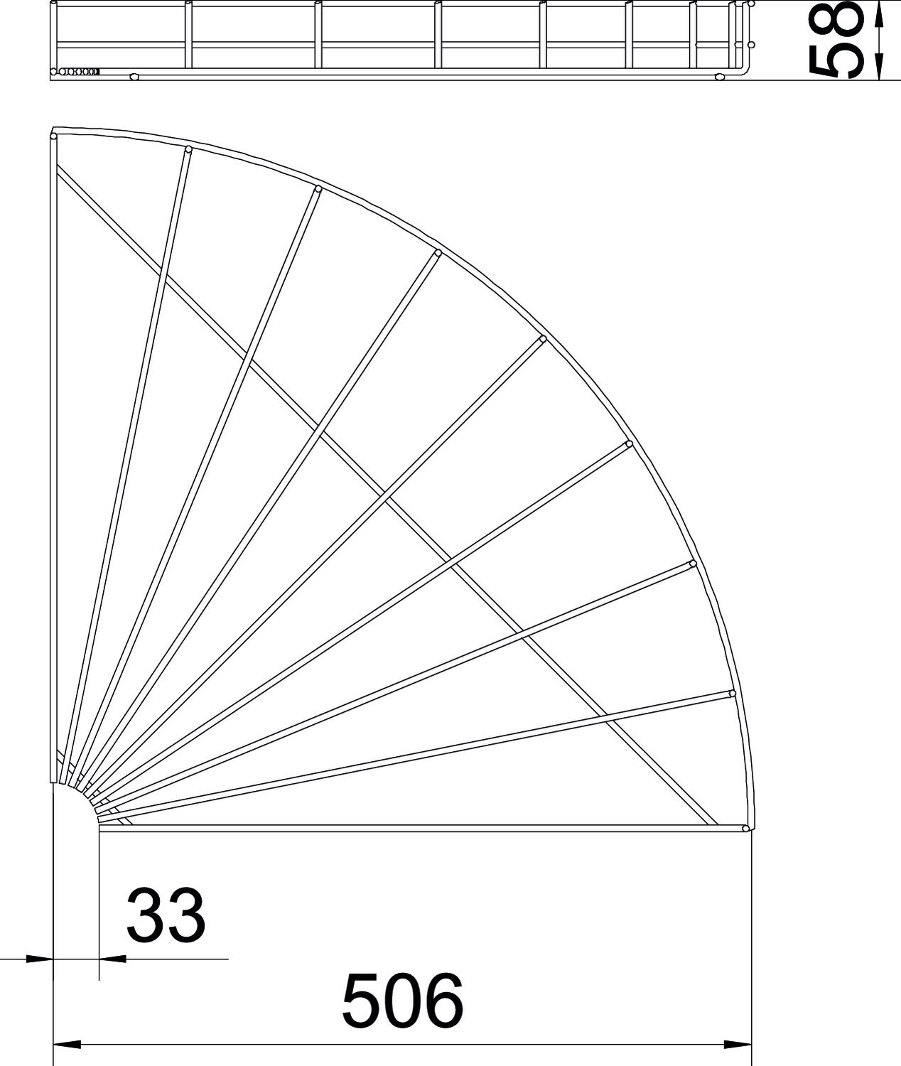 Popis produktuOblouk 90°, horizontální, pro mřížové žlaby s výškou bočnice 55 mm.