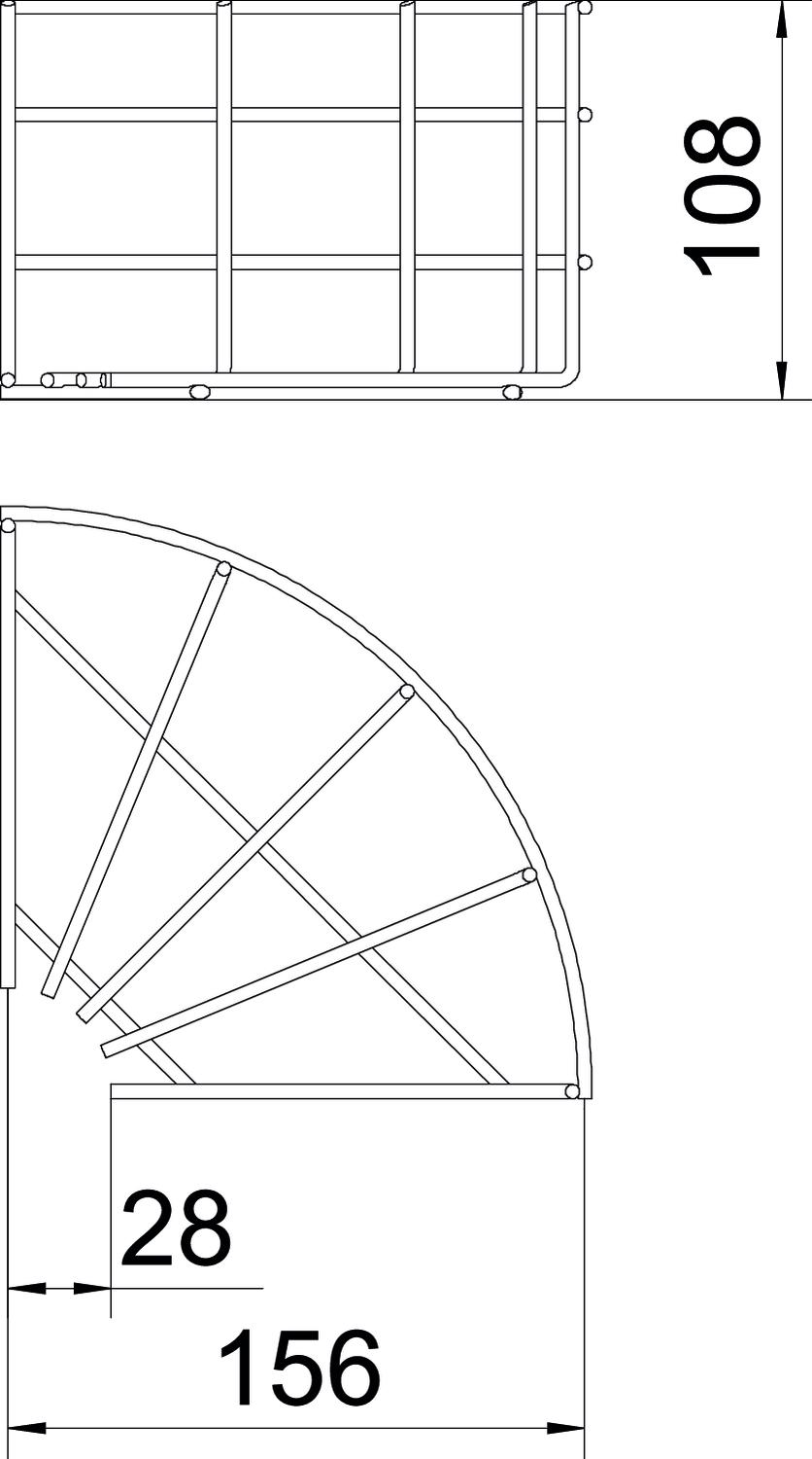 Popis produktuOblouk 90°, horizontální, pro mřížové žlaby s výškou bočnice 105 mm.