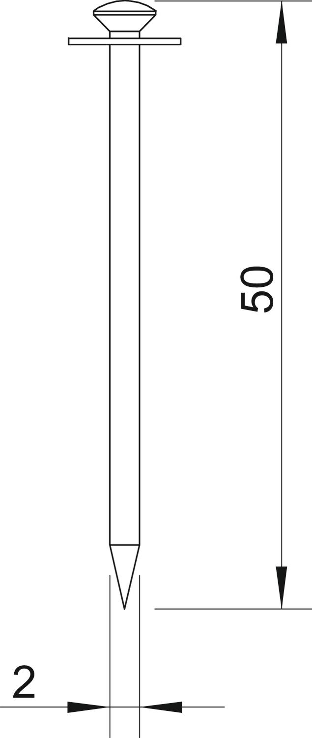 Dĺžka 50 mm Materiál Oceľ Povrch bez povrchovej úpravy Priemer stĺpika 2 mm Rozmer 2x50mm Rozmer d 2 mm Rozmer L 50 mm Tvar drieku hladký Tvar hlavy Šošovkovitá hlava Tvar hrotu klinový hrot tvrdený áno Vyhotovenie Impulz Vyhotovenie skrutkovací klinec nie - Všetky typy