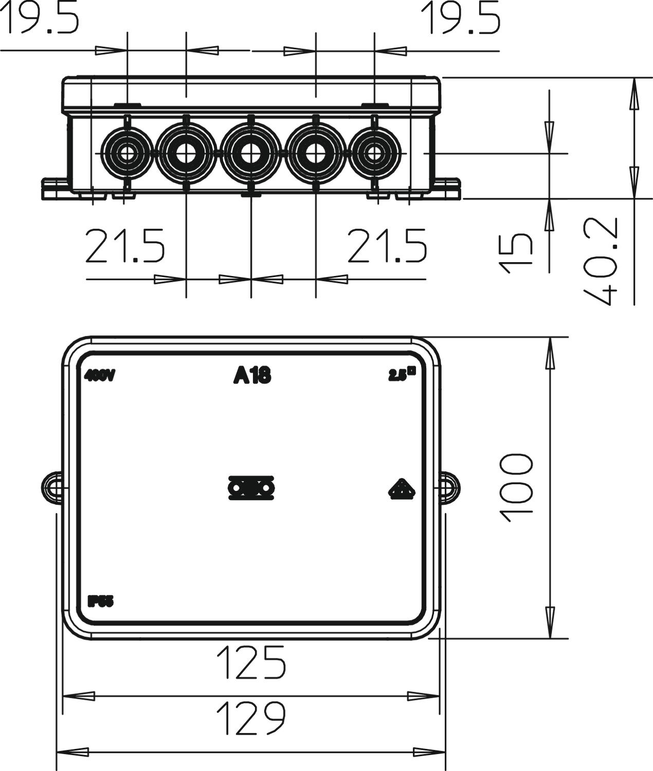 Popis produktuStupeň krytí IP55, jmenovité napětí 690 V, jmenovitý průřez 2,5 mm², 10 vývodů pro kabely o průměru 5-14 mm